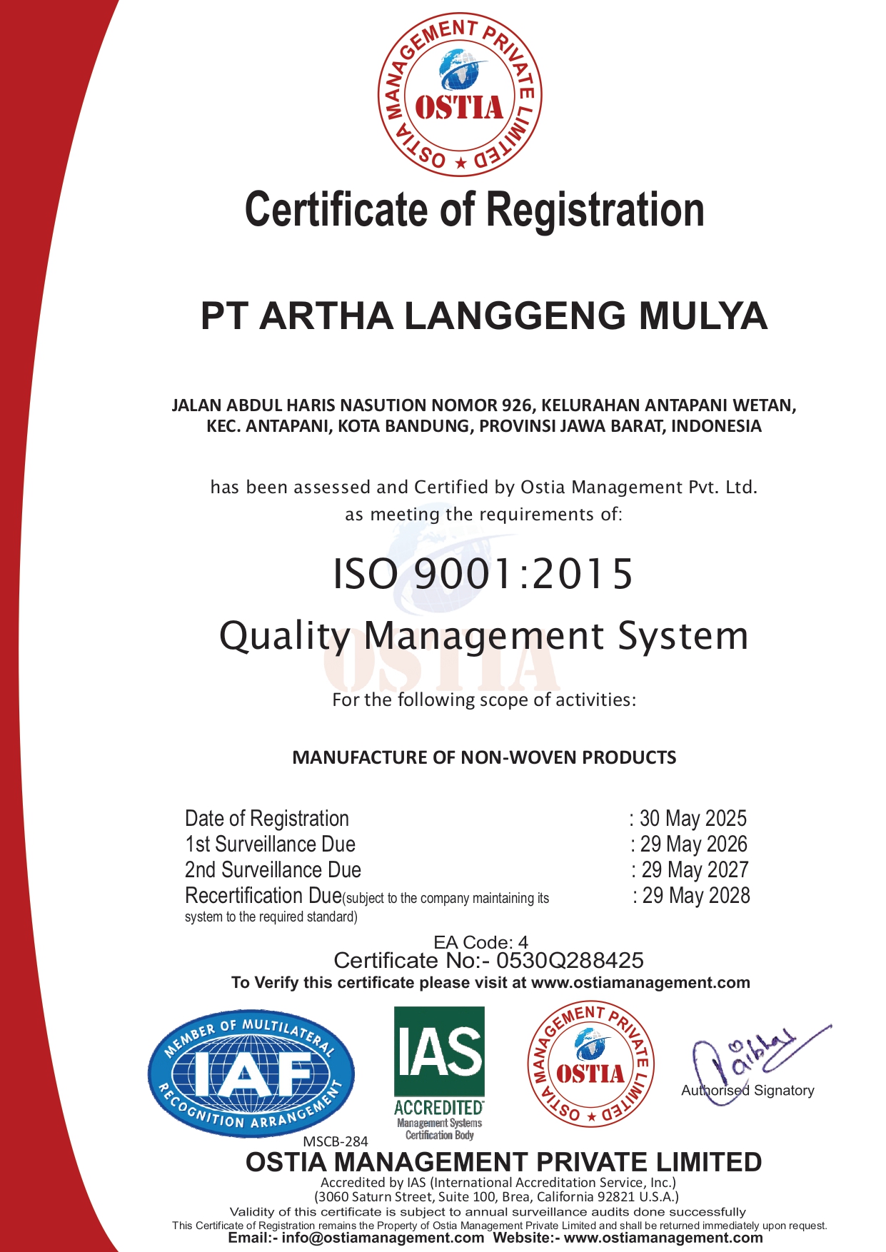3. Memastikan terpenuhinya kesejahteraan dan keselamatan kerja bagi seluruh karyawan PT. ARTHA LANGGENG MULYA.